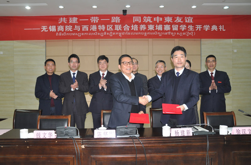 12月23日,9名由西港特區(qū)公司資助的柬埔寨學(xué)生在無錫商院參加了“共建一帶一路 同筑中柬友誼——無錫商院和西港特區(qū)聯(lián)合培養(yǎng)柬埔寨留學(xué)生開學(xué)典禮”儀式,未