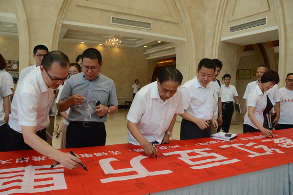 集團(tuán)黨委書記、總裁周海江參加啟動儀式并講話。周海江在講話中表示,“大愛紅豆萬里行”歷時十天,行程萬里,探訪人員從無錫出發(fā),深入重慶、四川等地紅豆村,通過“尋找最美愛的故事”、“尋找最古老紅豆村落”、“關(guān)愛留守兒童、老人”、“資助寒門學(xué)子上大學(xué)”等系列公益活動,用“愛”踐行社會責(zé)任,用“愛”傳播紅豆情懷,用“愛”弘揚(yáng)中華文化,用“愛”唱響“紅豆七夕節(jié)”。“紅豆村、紅豆樹、紅豆情”,因?yàn)椤凹t豆”,紅豆集團(tuán)與全國紅豆村心心相連,紅豆村也是紅豆集團(tuán)的黨建共建單位,通過此次活動進(jìn)一步加強(qiáng)雙方共建,促進(jìn)雙方共同發(fā)展。周海江希望探訪人員發(fā)揚(yáng)四千四萬精神,吃苦耐勞,通過聚走和探訪,充分挖掘本次活動的文化內(nèi)涵和精神實(shí)質(zhì),使紅豆之愛在全國紅豆村落地生根,開花結(jié)果。