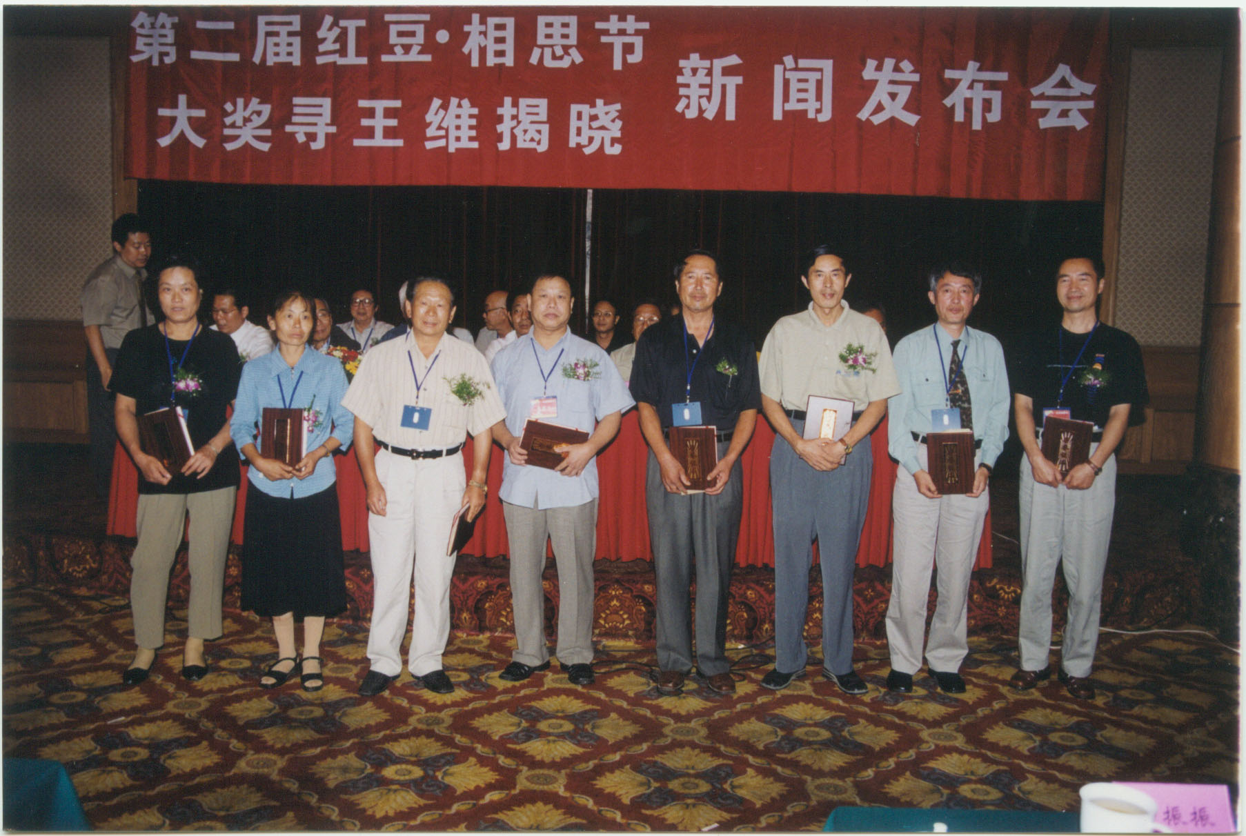 7月15日,“七夕紅豆·相思節(jié)詩詞大賽”歷經(jīng)三個半月截稿,據(jù)統(tǒng)計此次大賽共收到美、英、日、法、加拿大、新西蘭、泰國等十幾個國家和兩岸三地參賽稿件108000多篇,參賽者達(dá)到了31000多人。7月24日,臺灣著名詩人余光中欣然作《紅豆》詩一首,并電傳到紅豆集團(tuán)。7月25日,大賽組委會把進(jìn)入復(fù)評的隱名稿件送往北京,由大賽評委會進(jìn)行復(fù)評、終評。7月30日,大賽評委會經(jīng)過反復(fù)評審、打分后,評出所有“七夕紅豆·相思節(jié)詩詞大賽”獲獎作品。 8月14日,“七夕紅豆·相思節(jié)詩詞大賽”(20萬大獎尋當(dāng)代王維)揭曉新聞發(fā)布會在無錫錦江大酒店舉行,來自北京的詩人劉征以一首古風(fēng)《紅豆曲》摘取了桂冠。紅豆集團(tuán)董事局主席周耀庭、著名詩人賀敬之、孫軼青、全國政協(xié)委員顧蔚慶等參加了這次發(fā)布會,并給獲獎?wù)哳C發(fā)了獲獎證書與獎金。