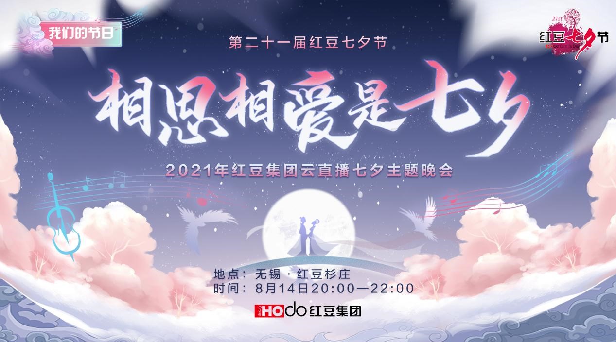 8月14日19:30,由紅豆集團(tuán)獨(dú)家特別呈現(xiàn)的2021年央視總臺(tái)七夕晚會(huì)在CCTV-3正式播出。隨后20:00,紅豆集團(tuán)“相思相愛是七夕”第21屆紅豆七夕節(jié)云直