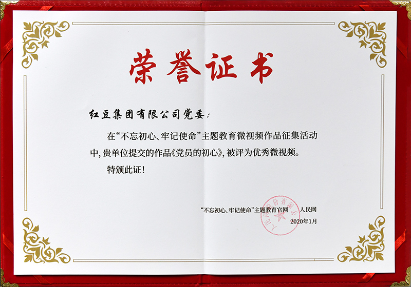 紅豆集團參評的《黨員的初心》,經(jīng)過專家評選,網(wǎng)絡投票,從全國4000多件作品中脫穎而出,被評為50個“優(yōu)秀微視頻”作品之一,紅豆集團也是全國唯一一家民營企業(yè)獲得此項殊榮。