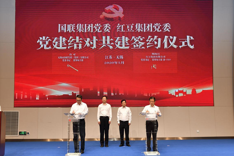 5月29日,紅豆集團(tuán)有限公司與無(wú)錫市國(guó)聯(lián)發(fā)展(集團(tuán))有限公司在紅豆錫東財(cái)富廣場(chǎng)舉行了黨建結(jié)對(duì)共建暨戰(zhàn)略合作簽約儀式,共同探索新時(shí)期黨建工作新思路、新路徑、新方法,攜手為無(wú)錫爭(zhēng)當(dāng)全省高質(zhì)量發(fā)展領(lǐng)跑者注入更多活力。中共無(wú)錫市委常委、組織部部長(zhǎng)馮軍,中共無(wú)錫市錫山區(qū)委書記顧中明,國(guó)聯(lián)集團(tuán)黨委書記、董事局主席許可,國(guó)聯(lián)集團(tuán)黨委副書記、總裁華偉榮,紅豆集團(tuán)黨委書記、董事局主席兼CEO周海江,中共無(wú)錫市錫山區(qū)委常委、組織部部長(zhǎng)竇虹等出席活動(dòng)。