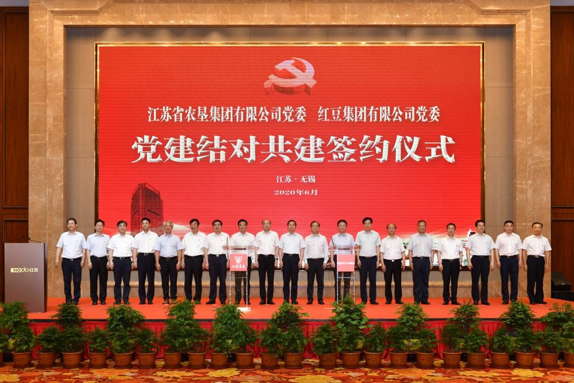 民企和國企強強聯(lián)合,以高質(zhì)量黨建引領(lǐng)高質(zhì)量發(fā)展。6月12日,紅豆集團有限公司黨委、江蘇農(nóng)墾集團有限公司黨委黨建共建簽約儀式在紅豆杉莊舉行,旨在不斷增強企業(yè)黨組織的政治功能和組織力,提升新時代黨建工作質(zhì)量和成效,促進雙方黨建工作和業(yè)務(wù)經(jīng)營深度合作,同時也是創(chuàng)新國企、民企黨建結(jié)對共建模式的積極探索。