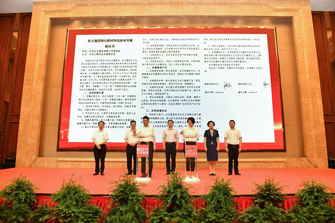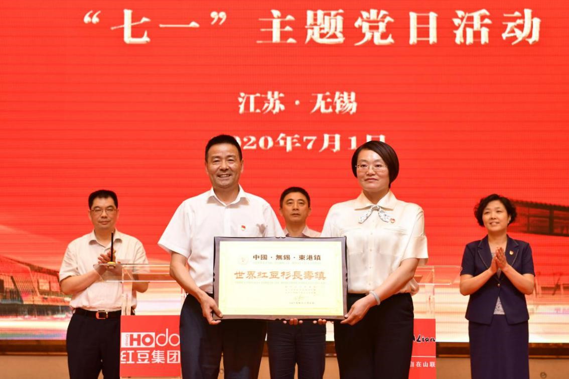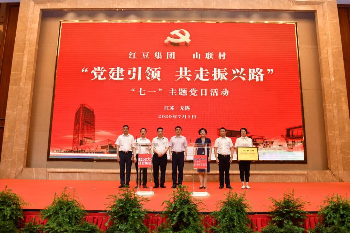 村企聯(lián)姻一家親,攜手共進(jìn)助振興。 7月1日下午,紅豆集團(tuán)、山聯(lián)村“黨建引領(lǐng)共走振興路”“七一”主題黨日活動在紅豆杉莊舉行?;顒由?,紅豆集團(tuán)與山聯(lián)村深化結(jié)對共建正式簽約;為推動山聯(lián)村休閑、度假、康養(yǎng)產(chǎn)業(yè)發(fā)展,帶動百姓致富,紅豆集團(tuán)還將“世界紅豆杉長壽鎮(zhèn)”品牌使用權(quán)授予山聯(lián)村。