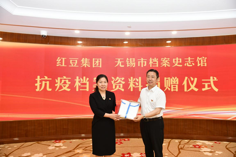 無錫市檔案史志館系統(tǒng)、深度、精準(zhǔn)地挖掘開發(fā)檔案史志資源,不斷提升新形勢下檔案史志工作水平,服務(wù)發(fā)展大局、服務(wù)社會民生,為無錫經(jīng)濟(jì)的高質(zhì)量發(fā)展作出了積極貢獻(xiàn)。紅豆集團(tuán)作為全國先進(jìn)基層黨組織,在疫情防控期間,凝聚強(qiáng)大力量,積極支持一線抗疫,勇?lián)?zé)任,為抗疫前線提供支持與保障。此次,雙方舉行檔案史料相互捐贈,既是對這場戰(zhàn)疫的永恒銘記,也是對這場人民抗疫戰(zhàn)爭的最好致敬。