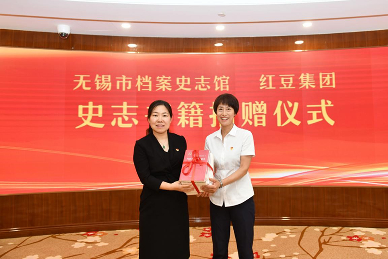 近年來,無錫市檔案史志館深挖無錫黨史地方志資源,潛心書寫紅色歷史,組織編撰地方黨史、地方志書籍,為全市黨員干部傳承革命精神,加強(qiáng)黨性教育提供了一批權(quán)威教材。捐贈儀式上,無錫市檔案史志館向紅豆集團(tuán)捐贈了無錫史志書籍。紅豆集團(tuán)向無錫市檔案史志館捐贈了紅豆的抗疫史料及紅豆秒改設(shè)備第一時間生產(chǎn)的首批抗疫產(chǎn)品。隨后,宗翡代表無錫市檔案史志館為周海江和紅豆集團(tuán)發(fā)放了捐贈證書。